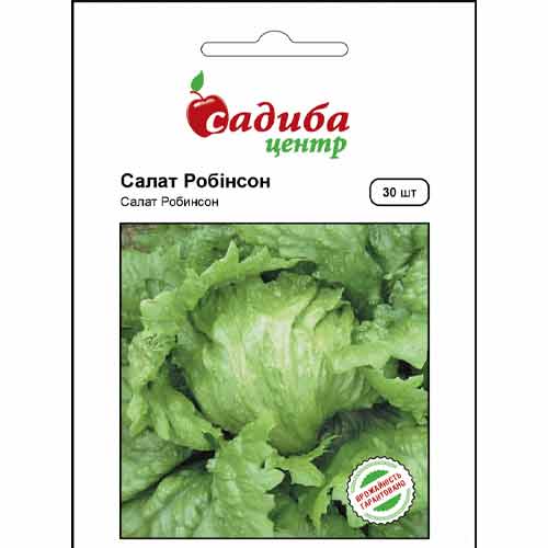 Салат Робінсон - представник овочів, який відноситься до качанових салатів. Овоч по формі, як качан, не надто щільний, зате має хрусткий смак. Листя у рослини пропозиції зеленої, зовні салат більше нагадує білокачанну капусту, так що нерідко покупці їх плутають. Сорт має високу якість, стійкістю до спеки, лежкість. Качани правильної форми, масою 600-700 г, насиченого зеленого кольору, листя злегка кучеряве по краях. Швидко зростаючий сорт салату з відмінним потенціалом зберігання.