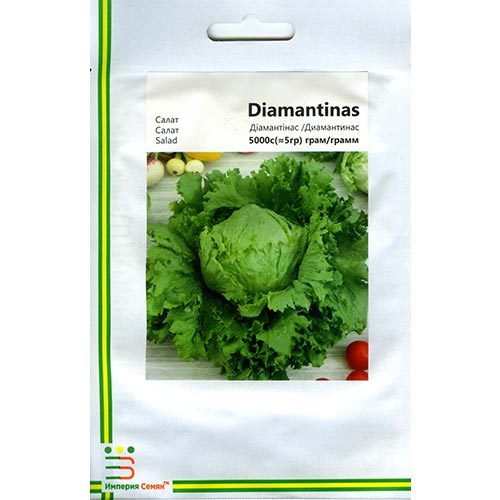 Салат качаний Діамантінас - сорт має апетитне зелене забарвлення. Вирощують у відкритому ґрунті з березня по серпень та захищеному ґрунті цілий рік. Качан формується великий, округлий, однорідний, лист слабопухирчастий. Має високу стійкість до стрілкування. Характеризується цей сорт великим виходом якісної, товарної продукції. При транспортуванні не втрачає товарності.
