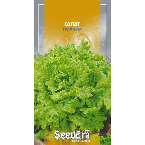 Салат листовий Грюнетта - ранній сорт, період дозрівання якого становить 35-50 днів. При дозріванні утворюються світло-зелені кучеряві листя, которі відрізняються м'ясистістю, ніжним і приємним ароматом, відмінним смаком. Крім усього цього сорт володіє великою кількістю корисних вітамінів.