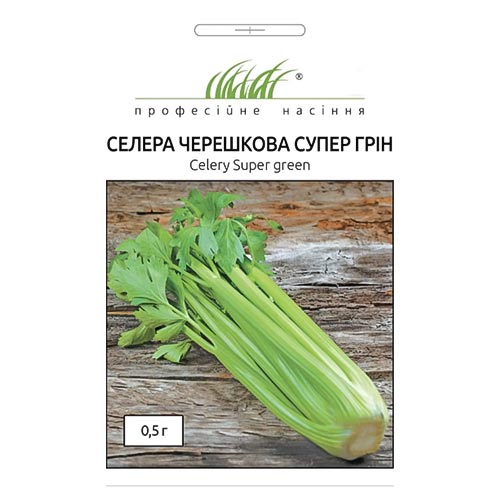 Селера черешковий Супер Грін - сорт селери черешковогї. Формує черешки довжиною до 45-60 см, без прожилок, зеленого кольору, чудового смаку. Сорт стійкий до весняного стрілкування, довго зберігається на корені. Призначений для переробки та використання у свіжому вигляді.