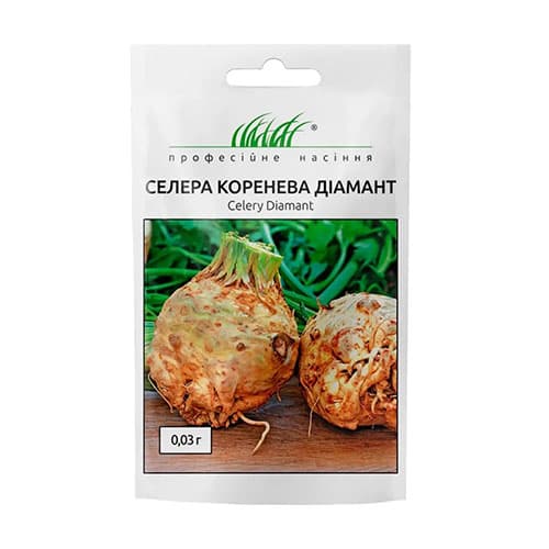 Селера коренева Діамант - середньостиглий сорт, період дозрівання якого настає через 145 днів від появи перших сходів. Округлий коренеплід, вагою до 1-1,5 кг, гладкий зовнішній шар шкіри має біле забарвлення. Пряме темно-зелене листя має середню висоту приблизно 40 см. Період посіву припадає на лютий. Культура любить добре зволожений і пухкий ґрунт. Селера коренева споживається у свіжому вигляді, а також використовується для переробки.
