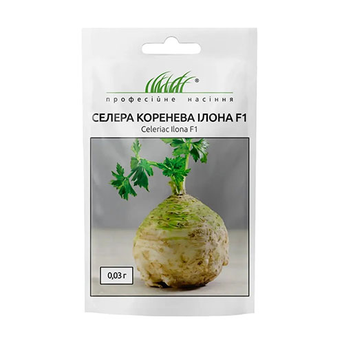 Селера коренева Ілона F1 - скоростиглий високоврожайний сорт призначений для вживання у свіжому вигляді, переробки та зберігання. Рослина потужна, формує коренеплоди масою до 2 кг із щільною шкіркою. Коренеплоди характеризуються високим вмістом сухих речовин і в процесі переробки зберігають дуже насичене біле внутрішнє забарвлення. Стійкий до стрілкування.