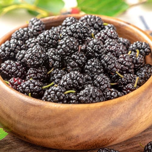 Шовковиця (тутове дерево) Чорний Принц – це сорт з дуже великими плодами. Довжина ягід сягає 5 см. При цьому вони вражають своїм блискучим чорним відтінком. Плоди м'ясисті та соковиті. Завдяки своєму солодкому смаку ягоди використовуються для приготування джемів, напоїв. В інтернет-магазині «GradinaMax» ви зможете придбати саджанці шовковиці, яка відрізняється підвищеною посухостійкістю.