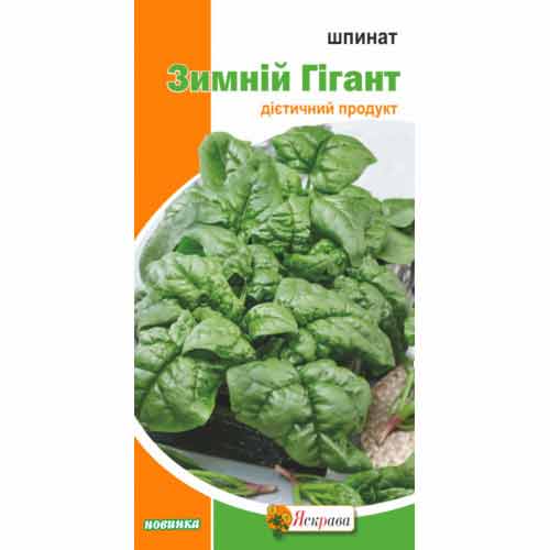 Шпинат Зимовий гігант - середньоранній сорт шпинату, який відрізняється високою стійкістю до низьких температур. Від перших сходів до збору врожаю, при дотриманні агротехніки, зазвичай проходить не більше 45 днів.