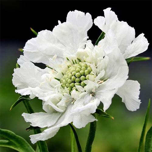 Скабіоза Перфекта Альба - сорт багаторічного квітучої рослини, який відрізняється могутнім корінням і численними білими квіточками. Висота куща дорослої скабіози невелика - не перевищує 50 см. Стебла прямі, трохи опущені. Квіти зібрані в суцвіття, діаметр кожного становить близько 10 см. Період цвітіння - від 30 до 35 днів.