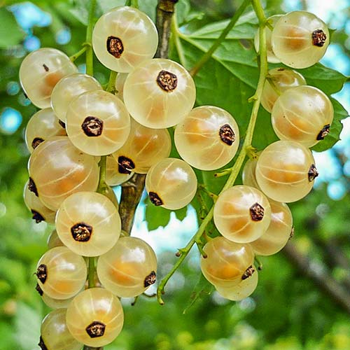 Смородина біла Кремова - середньоранній сорт білої смородини, самоплодовий. Володіє високою врожайністю до 6 кг з куща. Відрізняється відмінним смаком, соковитістю перламутрових медового відтінку ягід з просвічуваною м'якоттю і сильним ароматом. Стійкий до борошнистої роси та антракнозу. Кущ компактний, невисокий. Ягоди великі, з жовтуватим відтінком. Шкірочка тонка, відрив мокрий. Через тонку шкірку потрібно бути обережним під час транспортабельности. Смак дуже приємний, кисло-солодкий. Використовують смородину в свіжому вигляді, підходить для переробки в компоти, соки, варення, джеми, морси. У нашому інтернет-магазині ви можете замовити саджанці смородини без передоплати.