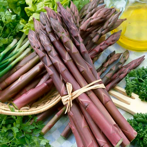 Спаржа фіолетова - багатий вітамінами і мінералами овоч з насиченим смаком. У їжу рекомендується вживати перші паростки, які будуть фіолетового відтінку. Їх можна готувати на пару, варити, смажити або використовувати для салатів і гарніру в свіжому вигляді.