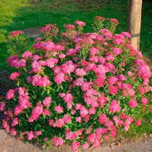 Спірея (таволга) японська Дартс Ред радує око своїми квітами протягом усього літа. Також можливе повторне цвітіння до жовтня, правда не настільки рясне. Поєднання червоних квіточок і яскравої зелені відмінно впишеться в будь-яку паркову композицію. Це популярне поєднання для японського саду.