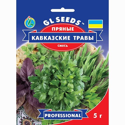 Суміш ароматних трав Кавказькі трави - щедрість і гастрономічний колорит прянощів народів Кавказу представлений у суміші зелених культур для вирощування на кухні, балконі та у відкритому ґрунті. До складу входять: Базилік фіолетовий, Петрушка, Селера, Чабер, Коріандр, Естрагон.