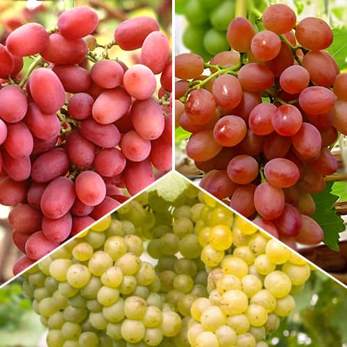 Комплект Безнасінного винограду з 3 саджанців - це набір сортів без кісточок, який ідеально підходить для тих, хто цінує зручність і смак. До комплекту входять сорти, що вирізняються високою врожайністю та стійкістю до хвороб. Ягоди цих сортів мають приємну солодкість, соковиту м'якоть і повністю позбавлені насіння, що робить їх ідеальними для вживання у свіжому вигляді, приготування вишуканих десертів, соків і сухофруктів. Виноград із цього набору не вимагає складного догляду, має ранні або середньоранні терміни дозрівання і добре переносить транспортування, зберігаючи чудовий смак і зовнішній вигляд.