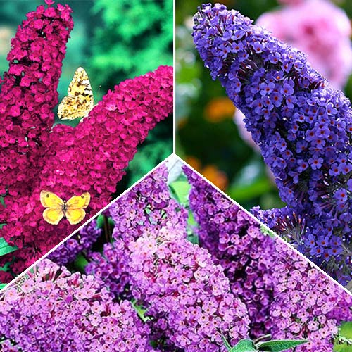 Королівська добірка буддлей для створення розкішного саду ароматів! Запашні квітучі рослини пахнуть так солодко, що вдихати запах меду, настояного на сонці, хочеться нескінченно. Забарвлення квітів витримане в королівській гамі: густий пурпур, насичений фіолетовий і полум'яно-червоний. Посадіть рослини разом і отримаєте ефектну, пахучу композицію з трьох яскравих відтінків, притаманних царським садам. У наборі зібрані буддлеї: