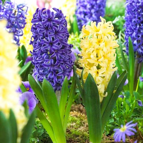 Комплект гіацинтів з 2 сортів – набір контрастного кольору, який дозволяє без зайвого клопоту отримати гармонійну флористичну композицію і на садовій клумбі, і при контейнерній вигонці до певної дати. Природне цвітіння припадає на березень – квітень, при вирощуванні в горщику – на 10 тиждень після посадки. На зиму потрібне укриття мульчею. Сорти мають виражений аромат і відрізняються високими пишними султанами з численними зірчастими квітками діаметром до 4 см кожна.
