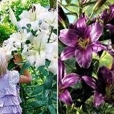 Розкішні лілії-дерева заввишки до 150 см контрастних відтінків, які привернуть до себе загальну увагу... Хочете посадити такі? Тоді купуйте комплект з 6 цибулин! Ви зможете організувати одну або кілька клумб, а також заощадите 10% власного бюджету. Лілії підходять для контейнерного вирощування і зрізання.