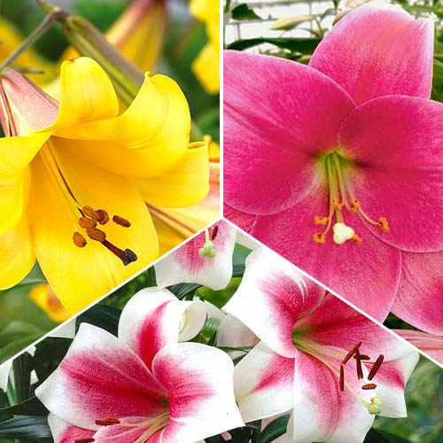 Щоб виділити свою ділянку серед інших, замовляйте цибулини лілії-дерева Гігантум. Ви однозначно будете у виграші, тому що двометрові квіти з великими бутонами-дзвіночками діаметром 25 см обов'язково будуть привертати до себе увагу. Їх можна посадити окремо і разом – в комплекті гармонійно підібрані сорти. Рослини довго не в'януть у вазах, тому з них виходить відмінна зрізка.