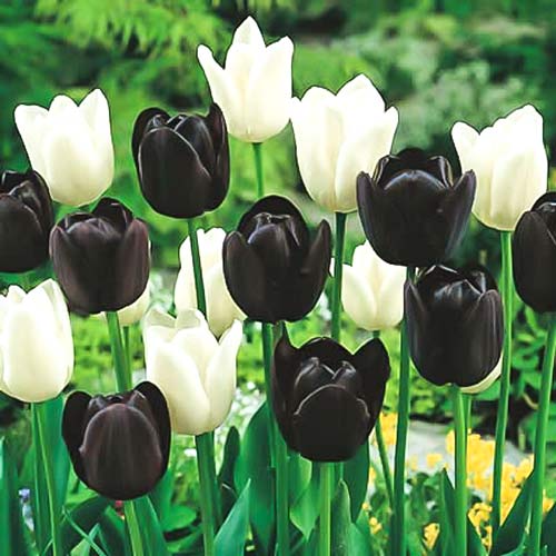 Комплект тюльпанів День і Ніч – це тандем сортів Вайт Елеганс і Королева Ночі, який втілює в собі єдність протилежностей. Строгі чорні й аристократичні білі бутони виглядають просто приголомшливо на одній клумбі. Довжина стебел – 40 см, висота келихів – до 12 см, вони розпускаються в квітні – травні. Хочете створити концептуальну квіткову композицію на своїй ділянці? Купуйте комплект цибулин тюльпанів День і Ніч!