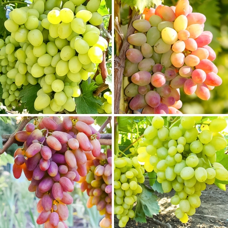 Виноград вважається символом родючості та справжньою їжею богів. Він містить підвищену кількість глюкози, а тому радує смакові рецептори своїм неповторним смаком. Замовте комплект Виноградна еліта з 4-х саджанців у нашому магазині – ми зібрали найбільш урожайні сорти, саджанці яких приживуться в 100% випадків. Це саме той виноград, який підійде для вирощування на продаж, подання на шикарних прийомах.