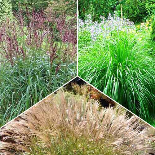 Міскантуси китайські, мікс – набір декоративних злаків, який зробить вашу ділянку дійсно оригінальною. В нього входять сорти Монінг Лайт, Кратер та Адажіо. Всі рослини потужні, до 2-3 м заввишки. Тонке листя згинається красивими дугами, формуючи чудові зелені живі водопади. У другій половині літа культури викидають безліч суцвіть-китиць пшеничного, бордового або світло-коричневого відтінку. Рослини висаджують в міксбордерах, прикрашають береги водоймищ, рокарії та альпінарії. Хочете заощадити на покупці й зробити свою ділянку максимально ефектною? Тоді замовляйте мікс саджанців міскантусів китайських по суперпропозиції!