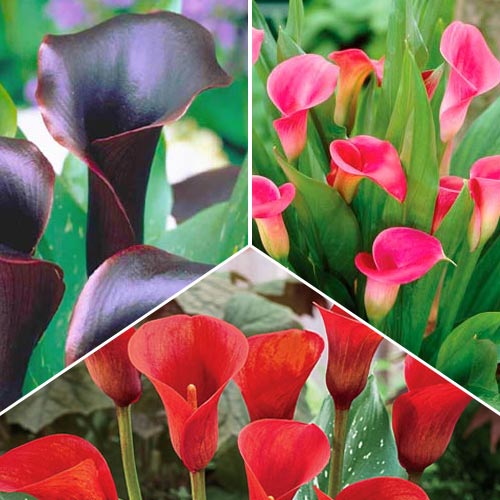 Якщо ви шукаєте нових вражень і оригінальних рішень у вашому саду, набір з 3 сортів, який ми підібрали, напевно вам сподобається. Вишукані та незвичайні квіти все ще мало зустрічаються в наших краях. Але якщо ви задумали дизайн саду або хоча б окремого квітника в модерновому стилі, вам просто необхідно купити комплект кал з 3 сортів в інтернет-магазині «GradinaMax»!