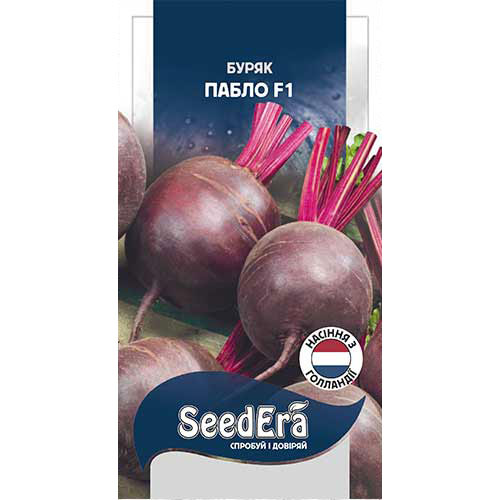 Буряк Пабло F1- високоврожайний середньостиглий гібрид. Період дозрівання 110 - 115 днів. Форма коренеплодів округла, діаметр 13 - 15 см, шкірка гладка, маса в середньому 220 - 450 г. Забарвлення темно-бордове, м'якоть темно-червоного кольору без радикальних кілець. Використовують для продукції на пучок, вживання в свіжому вигляді, для перероблювання і тривалого зберігання.
