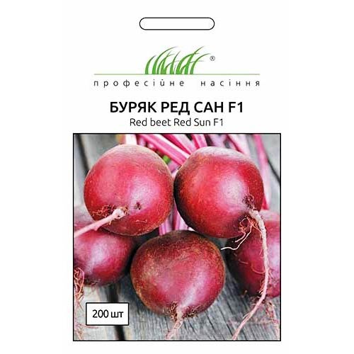 Буряк столовий Ред Сан F1 – селекційний гібрид, адаптований до вирощування в усіх кліматичних зонах нашої країни. Він стійкий до церкоспорозу, довго зберігається в зимовий період в сухих приміщеннях з хорошою вентиляцією. Коренеплід має короткий вегетаційний період дозрівання – врожай збирають вже через 100-115 діб. Бурячки рівні, круглі, масою 250-500 г. Темно-червона м'якоть без радіальних кілець, соковита, солодка, ніжна, не волокниста. Після теплової та кулінарної переробки зберігає смакові властивості.