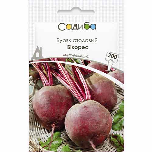Буряк столовий Бікорес – культура з пізнім терміном дозрівання. Урожай збирають за 130 днів. Плоди округлі, однакові за розміром. Шкірка густо-бордова, гладенька. М'якоть кольору стиглої вишні, однорідна, без світлих кілець. Корінці розвинені, а розетка листя – невелика. Замовляйте насіння буряка столового Бікорес – він відмінно зберігається, підходить для будь-якої переробки, має гарні товарні якості.