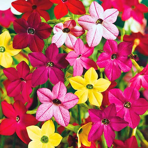 Тютюн духмяний, суміш забарвлень – популярний однорічник для декорування міксбордерів і квітників відкритого ґрунту. Проста в догляді рослина милує чудовими запашними квітами все літо. Набір насіння тютюну духмяного, суміш забарвлень, дозволяє з одного пакета отримати унікальні квіти різноманітних кольорів.
