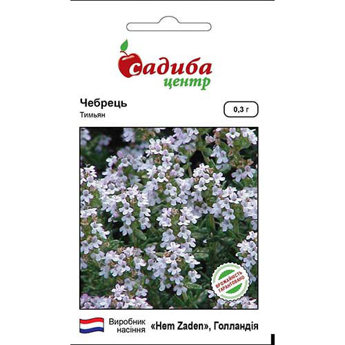Тім'ян (чебрець) - невеликий, сильно-розгалужений багаторічний чагарник з маленьким лінійно-ланцетоподібним темно-зеленим листям. Листя коротко черешкові, довжиною 5 - 10 мм. Суцвіття головчаті, компактні. Віночок завдовжки 5 - 8 мм рожево-ліловий. Горішки завдовжки до 6 мм, овальної форми. Аромат з пряним теплим присмаком, який обумовлений наявністю фенолів. Використовується в кулінарії, медицині і парфумерії. Додається до копченостей, м'яса, паштетів, сирів і грибів. Також використовується при консервуванні.