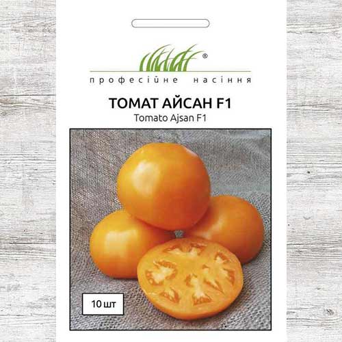 Томат Айсан жовтий F1 - це середньопізній, високопродуктивний, великоплідний гібрид. Рослина детермінантна, з добре розвиненим листовим апаратом, який захищає плоди від сонячних опіків. Плоди мають вирівняну форму, круглі, м'ясисті, щільні. В середньому вага плода до 250 г. Однак є екземпляри і по 350 - 370 г. Шкірка і м'якоть томатів яскраво-оранжевого відтінку. При розломі м'якоть має цукристу текстуру. У нашому інтернет-магазині сучасні сорти і гібриди.