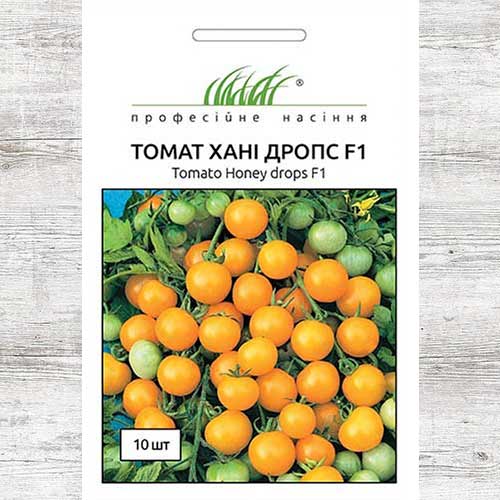 Томат черрі Хані Дропс жовтий F1 належить до гібридів індетермінантного типу зростання. Вегетаційний період цього сорту становить 60 днів з моменту висадки розсади на постійне місце. У період дозрівання на великому кущі формуються жовті помідорчики до двох з половиною сантиметрів в діаметрі. Вони досить щільні, тому добре піддаються транспортуванню. Активно використовуються як для свіжого вживання, так і для різних консервацій.