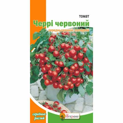 Томат Черрі червоний – чудовий варіант для відкритих грядок та плівкових теплиць. По термінам дозрівання відноситься до ранньостиглих, помідори можна збирати вже через 3 місяці. Формою, кольором та розмірами вони дійсно нагадують червоні вишні, важать 20 г. Томати зібрані на гілочках по 20 шт в кожній. Кущі невеликі, півметрової висоти. Замовляйте насіння томату Черрі червоний та насолоджуйтеся їх солодкістю!