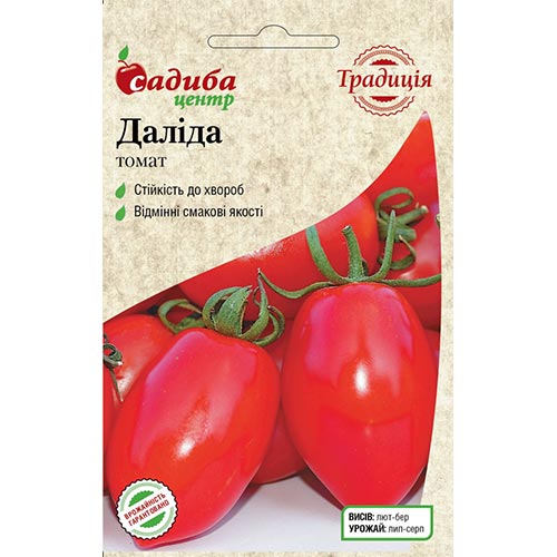 Томат Даліда - кущовий середньостиглий високоврожайний жаростійкий сорт для відкритого ґрунту та теплиць. Кущ здоровий, сильний, стійкий до хвороб томатів, у гнізді по 3-4 плоди. Плоди яйцеподібні, загострені на кінці, гладкі, яскраво-кармінові, соковиті, чудового смаку. Для свіжого споживання та заготовок.