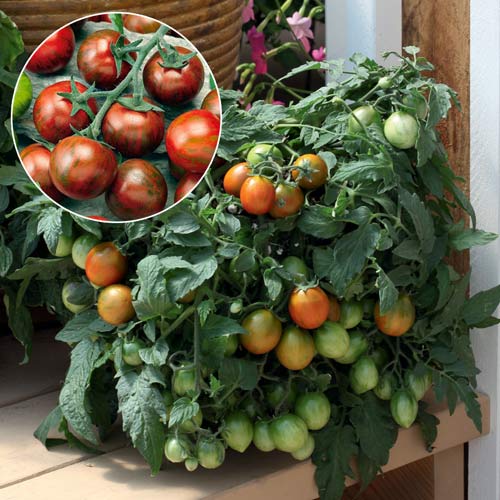 Цей високоврожайний сорт здивує не тільки своїм привабливим виглядом, але й якістю томатів. Він чудово приживеться у вазонах або горщиках-кашпо й зажадає зовсім мало місця! Всього через 1,5 місяці після посадки ви зможете порадіти першому врожаю.