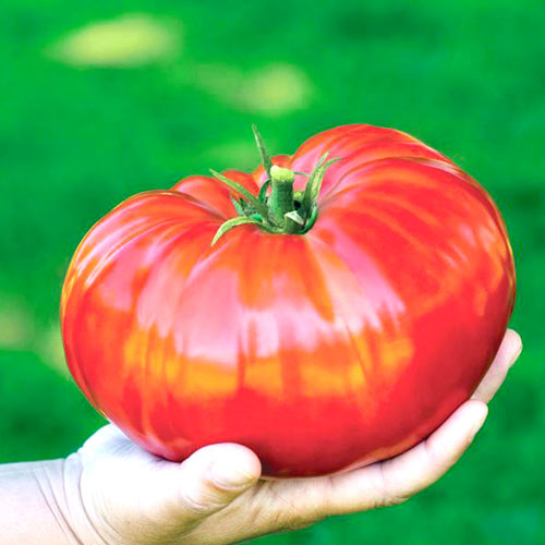 Томат Король Гігантів відрізняється воістину королівськими розмірами: при належному догляді чагарник виростає до 180 см. На сильних пагонах формуються щільні соковиті плоди. Маса одного помідора досягає 500 г, при вирощуванні в тепличних умовах – 800 г. Кисло-солодкий смак м'якоті обумовлює широке використання врожаю у кулінарії: плоди перетирають на сік, кетчуп, соуси. В інтернет-магазині «GradinaMax» ви зможете придбати насіння томату і порадувати свою сім'ю смачним джерелом вітаміну С.