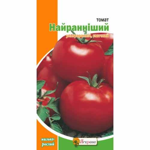 Томат Найранніший - один з найбільш ранніх сортів томату для відкритого ґрунту. Термін дозрівання 95-100 днів. Рослина детермінантна, середньооблистяна, висотою 50-70 см. Не потребує обов'язкового пасинкування. Плоди плоскоокруглі, яскраво-червоні, масою 60-120 г, середньощільні, соковиті, збалансованого смаку. Урожайність 6-8 кг/м2. Сорт цінують за стресостійкість, ранню і дружню віддачу врожаю. Рекомендується для вживання у свіжому вигляді, переробки на томатопродукти.