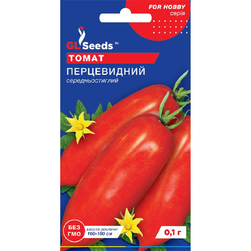 Томат перцевидний - середньоранній сорт з екзотичними за формою плодами. Термін дозрівання 104-110 днів. Рослини індетермінантні, висотою 1,6-1,8 м. Ошатності рослині надають яскраво-червоні подовжено-перцевидні з гострим носиком плоди.