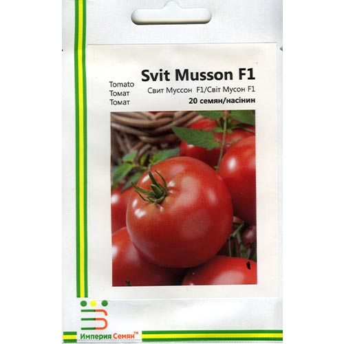 Томат Світ Муссон F1 - ранньостиглий гібрид томату детермінантного типу, дозріває за 60-68 днів.Для вирощування в плівкових теплицях, пластикових тунелях, на полях.Плоди округлої форми, трохи приплюснуті, насиченого червоного кольору, однорідні, тверді, дуже смачні.Кущ середньої сили росту з товстим стеблом і короткими міжвузлями. Листя дуже добре покриває плоди і захищає їх від сонячних опіків.Висока стійкість до розтріскування.