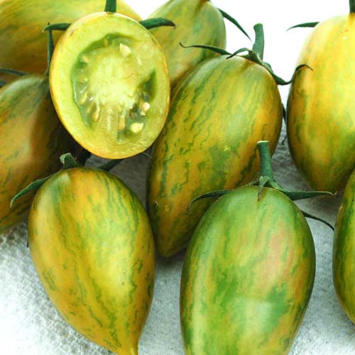 Овочевий сорт отримав назву за незвичайне забарвлення довгастих томатів до 3-х см завдовжки. Плоди в технічній і біологічній стиглості залишаються зеленими. При цьому відрізняються оптимальним вмістом вітамінів і приємним помідорним ароматом. Томати універсального призначення, добре переносять транспортування, добре зберігаються.