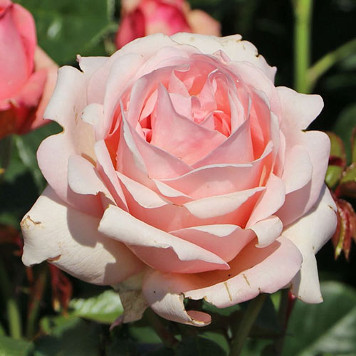 Троянда Афродіта (Aphrodite) - це чайно-гібридна троянда, яка є справжнім скарбом у вашому саду, який буде вражати і захоплювати вас довгі літа. Бутони мають класичну, чашоподібну форму з густомахровими пелюстками. Квіти великі, близько 10-12 см у діаметрі, мають ніжно-рожеве забарвлення, часто з персиковими відтінками, що надає квітам теплого, м'якого вигляду. Кущ середньорослий 60-80 см, рідко більше. Глянцеве листя шкірясте, темно-зелене. Завдяки правильній формі, кущ троянди має мальовничий вигляд навіть у період відсутності бутонів. Ця дивовижна троянда цінна і почесна, її винятковий колір можна порівняти з рідкісною коштовністю. Ефектна, не надто росла - прекрасно виглядає на передніх планах, у врізках у газони, в рабатках і міксбордерах.