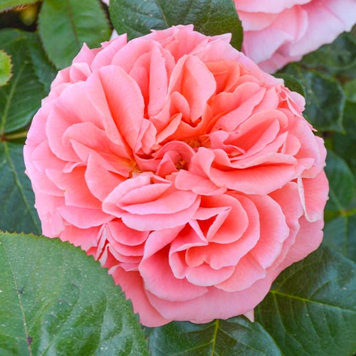 Троянда чайно-гібридна Амур де Молен - чудовий великоквітковий, густомахровий сорт, Квітки в повному розпуску мають діаметр до 15 см. Бутони лососево-рожевого відтінку виділяють сильний, класичний аромат. Цвіте Амур де Молен рясно, до самих заморозків. Листя велике, темно-зелене, напівглянцеве, дуже стійке до захворювань. Кущ прямостоячий, висотою до 120 см. Рекомендується для одиночних і групових посадок, можна вирощувати в контейнерах і горщиках.