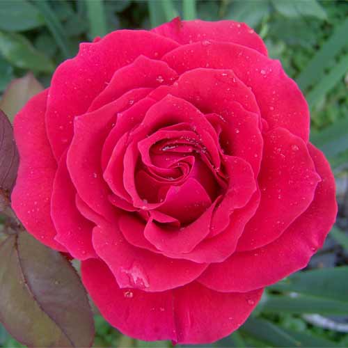 Троянда чайно-гібридна Домініка - дивовижної краси троянда з яскраво-червоними квітками. Під час цвітіння троянди під квітками практично не видно листя – настільки рясно її цвітіння! Троянда Домініка чудово виглядатиме в бордюрних посадках, на клумбах і навіть у контейнерах.