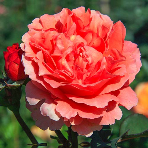Яскрава представниця сучасної селекції троянд. Квітки чашоподібні, махрові (20-40 пелюсток), діаметром близько 10 см, їх неповторне забарвлення демонструє безліч відтінків оранжево-рожевого кольору. Кожне стебло несе зазвичай одну квітку. Аромат середньої інтенсивності, ніжний. Стійкість до дощу досить висока. Цвіте рясно двома-трьома хвилями. Кущ заввишки 80-100 см, листя густе, блискуче.