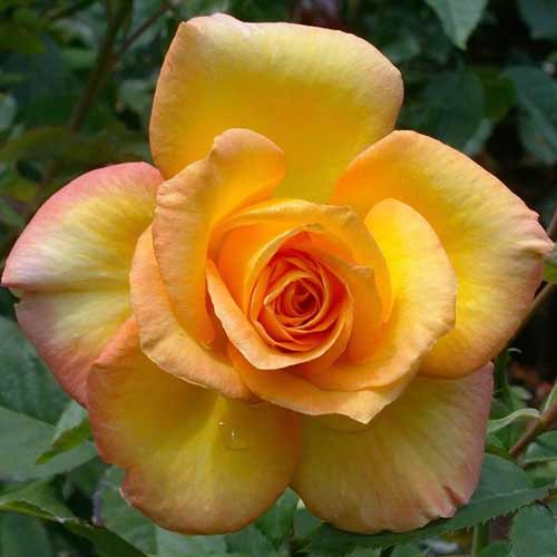 Троянда чайно-гібридна Голд Медал - квітки келихоподібної, класичної форми, махрові, до 40 пелюсток, золотисто-жовтого кольору, з сильним ароматом. Частіше поодинокі або в невеликих суцвіттях на міцних квітконосах. Кущ високорослий, прямостоячий, зі щільним, глянцевим, темно-зеленим листям. Цвітіння рясне, хвилями протягом усього сезону.
