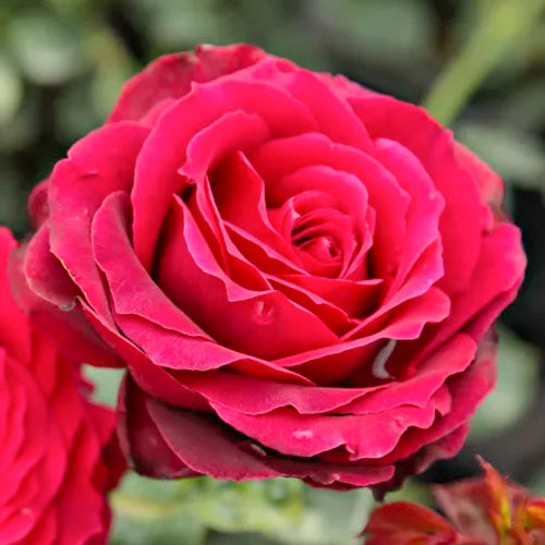Чашоподібні, оксамитово-червоні з чорним відливом квітки на високих стеблах - гра фарб і відтінків рубіново-червоної царської мантії. Вінці густо-махрові - понад 40 пелюсток зібрані в складну композицію. Листя яскраво-смарагдове, на пагонах рожеві вигнуті шипи. Чорна магія - справжня королева саду - горда і велична.