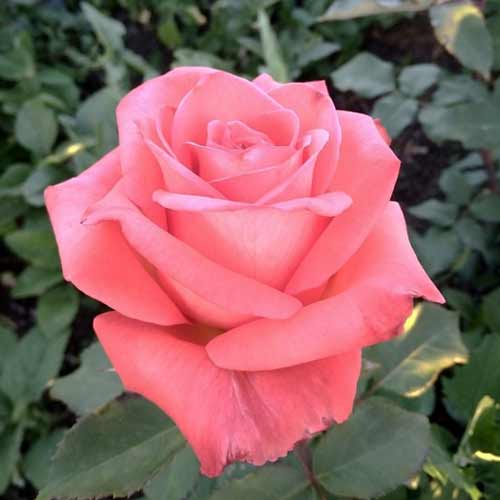 Троянда чайно-гібридна Рафаелло – стійкий до захворювань німецький сорт з дуже красивими квітами. Пелюстки коралового кольору, не вигоряють на яскравому сонці. Келих класичний з високим центром, зберігає форму до кінця цвітіння.