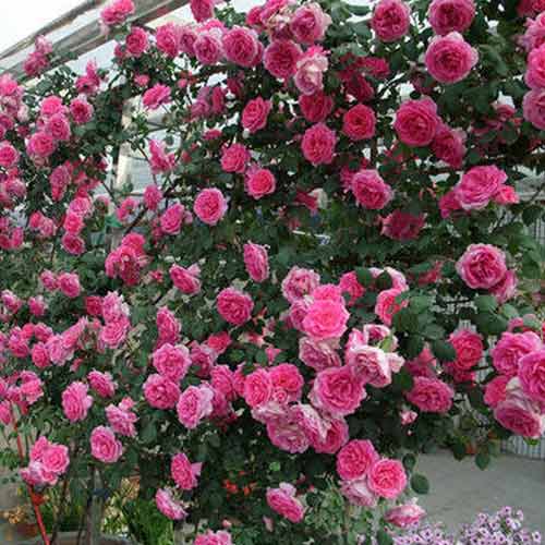 Троянда Клаймінг Парад - чарівна плетиста троянда для невеликого саду. Квітки величезні, густомахрові, яскраво-рожевого відтінку з більш блідим зворотним боком, що відливає сріблом. Бутони з'являються по одному або у важких китицях до 5 шт. Кущ сильнорослий, з блискучим темно-зеленим листям, швидко приживається і досягає 3 м у висоту, повною мірою починає цвісти на другий рік після посадки. Сорт зимостійкий, дуже стійкий до борошнистої роси і чорної плямистості. Відмінно росте як на опорі, так і розлогим кущем.