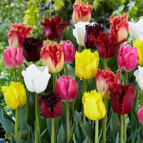 Тюльпани бахромчасті – це неймовірно красиві квіти, які відрізняються голчастою бахромою по краю пелюсток. Забарвлення може бути різноманітне: кармінне, кремове, біле, бордове, жовте. Рослина висотою до 60 см радує цвітінням у квітні-травні, ефектно виглядає на тлі каменів, хвойних, зелених огорож. Щоб прикрасити клумбу всіма кольорами веселки, замовте цибулини бахромчастих тюльпанів в інтернет-магазині «GradinaMax».