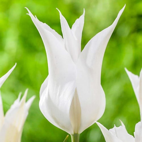 Тюльпан лілієвидний Балада Вайт - красивий, елегантний сорт, який з першого погляду вражає всіх любителів квітів. Великі квітки з тонкими пелюстками мають довжину 10-12 сантиметрів і при розкритті набувають форми зірки. Вони кріпляться на жорстких і міцних стеблах, що добре протистоять сильним поривам вітру. Красиво виглядають посаджені групами по 10-15 цибулин на даному місці або в композиціях, змішаних з іншими сортами тюльпанів або нарцисів. Вони прикрасять кожен газон, клумбу, місця вздовж паркану, доріжки або рокарія.