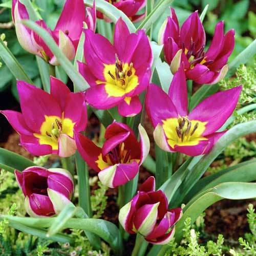 Тюльпан ботанічний Персіан Перл – мініатюрна квітка незвичайного забарвлення. На зовнішній стороні пелюсток проходить широка зелена смуга з тонкою рожевою окантовкою, тому в закритому вигляді бутони здаються швидше зеленими. Але варто пелюсткам розкритися, і ви побачите незамутнений рожевий колір, який абсолютно змінить клумбу. Висота квітконосів становить всього 20 см, тюльпани розпускаються в березні – квітні.