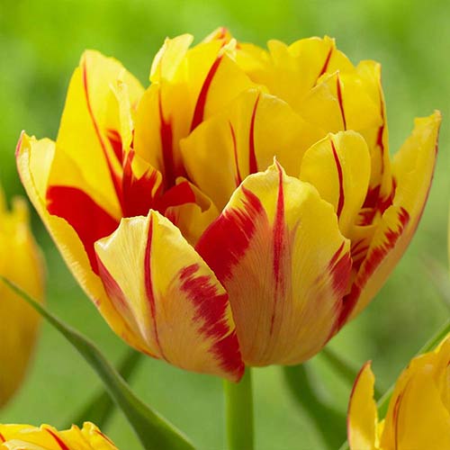 Тюльпан махровый Монселла — сорт ранних тюльпанов высотой до 30 см. Крупные пионовидные бутоны размером 8–10 см отличаются эффектными желто-красными лепестками. Весенние цветы порадуют продолжительным цветением, яркими красками, приятным ароматом.
