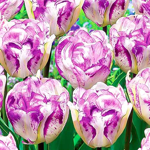 Тюльпан махровий Нормандія – це справжній північний красень. Його білосніжні пелюстки по краях відтінені ніжними бузковими прожилками. Квіти дуже виразні, підходять для створення вишуканих і стриманих клумб, бордюрів. А ще ці тюльпани можна посадити групою посеред газону або використовувати для зрізання. Хочете додати ніжних ноток у весняні клумби або «підфарбувати» хвойні багаторічники кольором? Купуйте цибулини тюльпанів Нормандія!